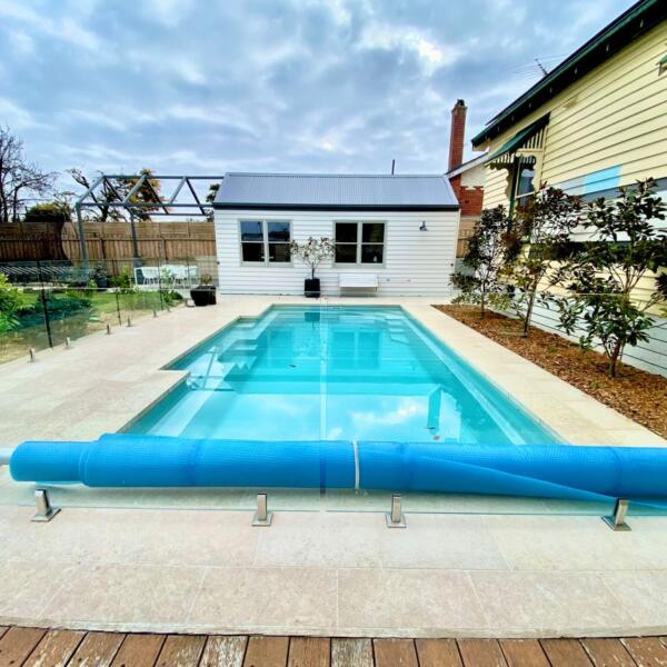 This stunning 8m Maradona pool added style to our customer’s home, which they are renovating. Another feature of this pool is the infloor cleaning which makes life easier, you relax while the pool cleans itself!