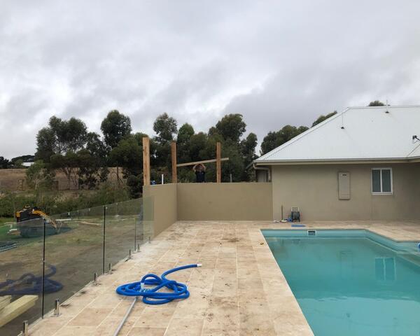 - Privacy Screen Wall: Concrete blocks 400 x 200 x 150mm core filled with concrete and rendered